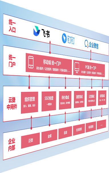 对协作平台提供支持服务,,支持企业应用与协作平台对接,,,包含组织同步、、、消息集成、、、、待办集成等。。。支持目前主流的协作平台:钉钉、、、、企微和飞书。。